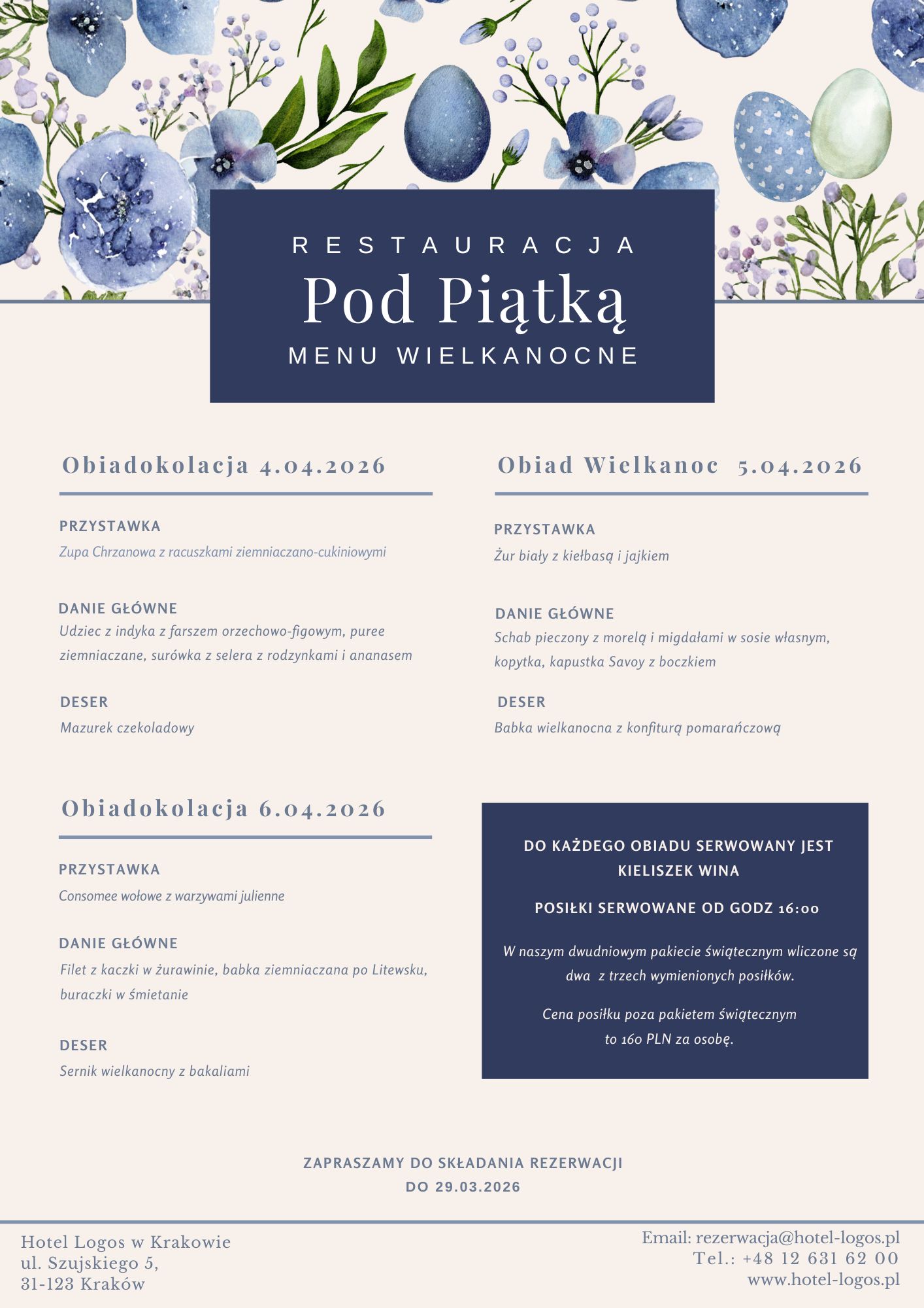 Wielkanocny czas pełen przygotowań i moment, w którym wiosna daje o sobie znać. Kraków wraz z nadejściem pierwszych ciepłych dni zmienia się nie do poznania. Miasto w wiosennym rozkwicie to najpiękniejszy czas na długie spacery w rodzinnym gronie i wyjątkowy, świąteczny czas spędzony razem. Kraków wszystkim odwiedzającym serwuje nie tylko piękne widoki, ale i niepowtarzalne atrakcje jak jeden z największych wielkanocnych jarmarków na Rynku Głównym - zaledwie kilka minut spacerem od Hotelu Logos. Chętnych do spędzenia świąt z nami zapraszamy do bezpośredniej rezerwacji.