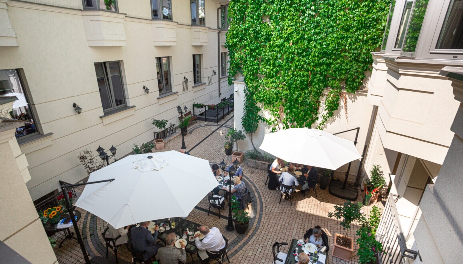 Usiądź wygodnie i ciesz się naszym tajemniczym ogrodem ukrytym w samym centrum Krakowa. Nasze letnie patio w stylu francuskim to wyjątkowe miejsce pełne zieleni i kwiatów!